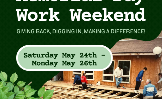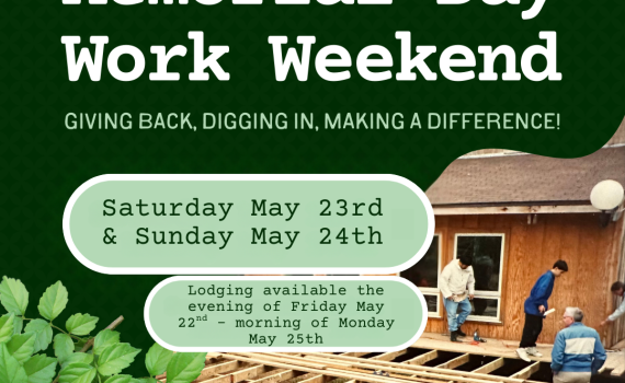 May 24-26, 2025 (Saturday - Monday) Giving back, digging in, making a difference! Every year, hardworking volunteers come together to help LOMC shine for another season of outdoor ministry. Whether you’re an individual, a family, a church group, a scout troop, or any other group, you’re invited to join us […]