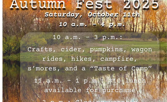 Make plans to join us for Autumn Fest on Saturday, October 11! It will be a day of fun at camp including Pumpkin Carving, Cider Pressing, Crafts, Wagon Rides, Hikes, Campfire S’mores, and a “Taste of Camp”. Parking will be available in and around the Admin Building parking lot, with […]