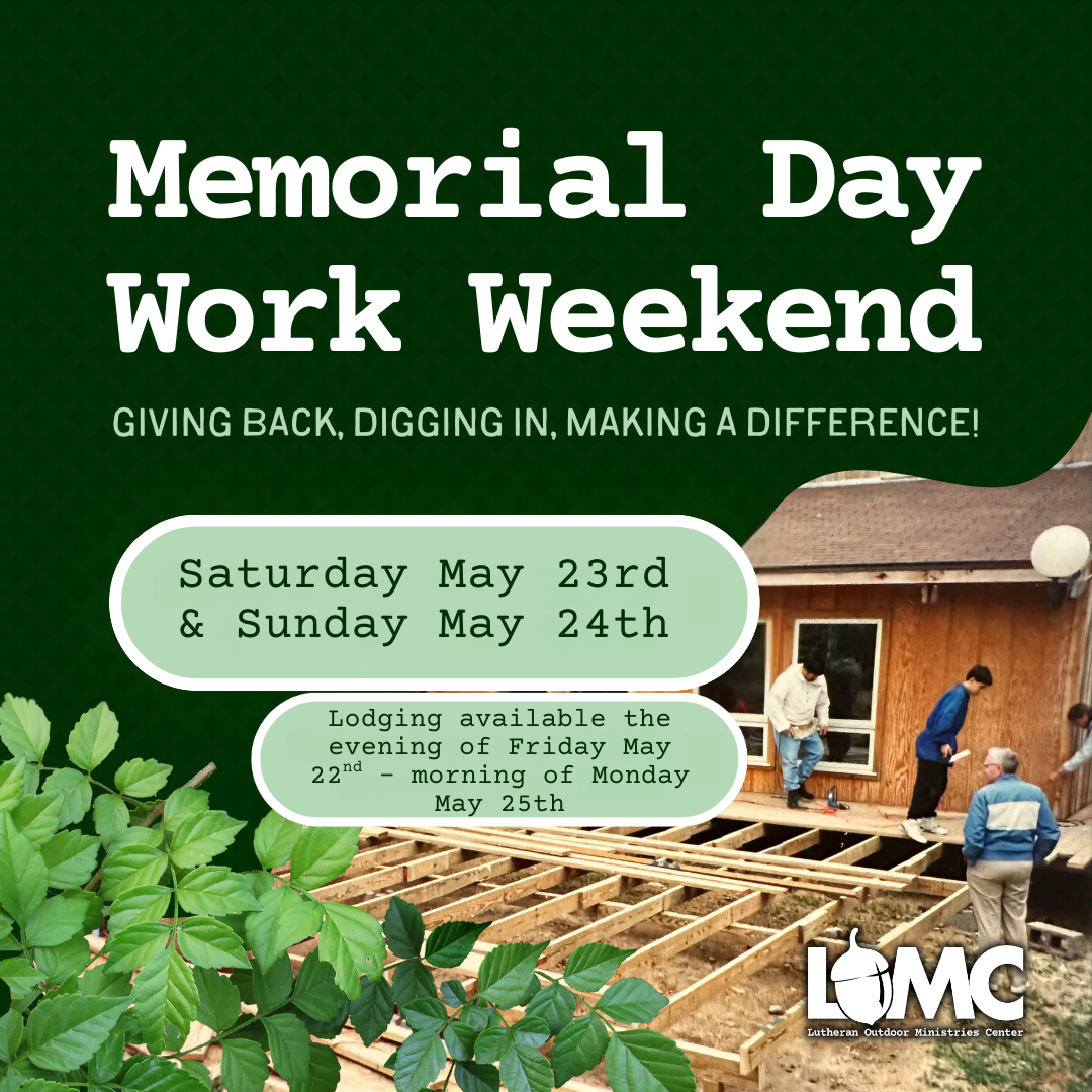 Every year, hardworking volunteers come together to help LOMC shine for another season of outdoor ministry. Whether you’re an individual, a family, a church group, a scout troop, or any other group, you’re invited to join us for a weekend of service, fellowship, and fun!
