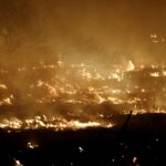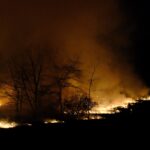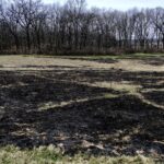 On a beautiful evening, the grassland was burned and will provide and encourage new growth.